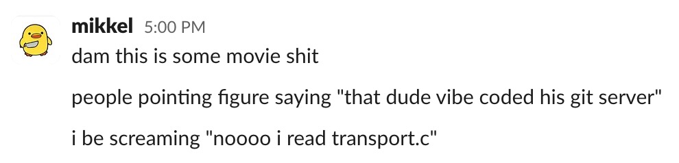 Between bouts of vertigo, he spent his days reading git source code out of this fear: